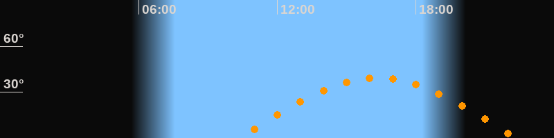 Höchster Stand (Kulmination)16:20 Uhr (h = 39,2°)