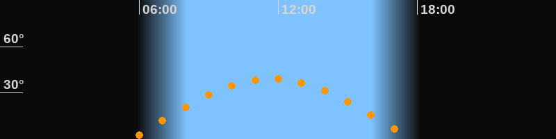 | Höchster Stand (Kulmination) | 11:42 Uhr (h = 39,2°) |