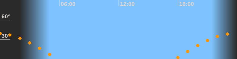 | Aufgang | 17:41 Uhr im Osten (αAz = 89,4°) |