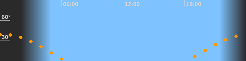 | Untergang | 06:22 Uhr im Westen (αAz = 270,6°) |