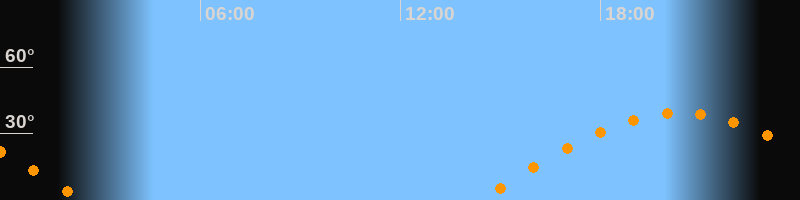 | Aufgang | 14:21 Uhr im Osten (αAz = 89,4°) |