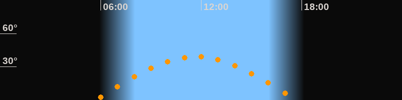 Höchster Stand (Kulmination)11:41 Uhr (h = 39,2°)