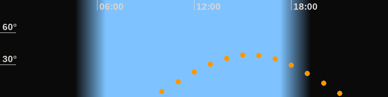| Höchster Stand (Kulmination) | 15:25 Uhr (h = 39,2°) |