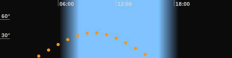 | Höchster Stand (Kulmination) | 09:39 Uhr (h = 39,2°) |