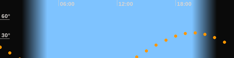 | Aufgang | 13:45 Uhr im Osten (αAz = 89,4°) |