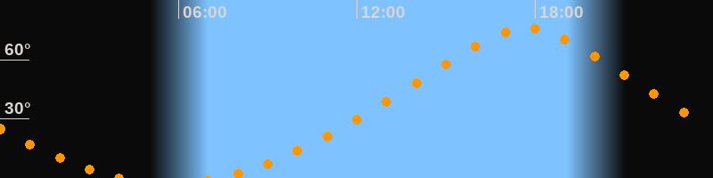 Höchster Stand (Kulmination)17:42 Uhr (h = 75,7°)