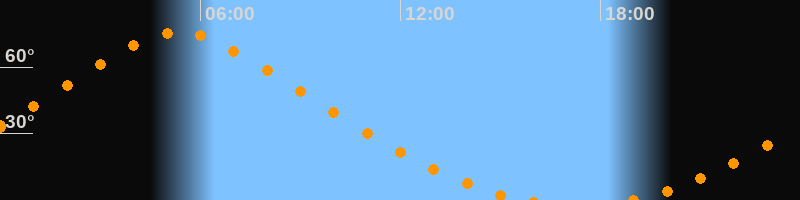Höchster Stand (Kulmination)05:21 Uhr (h = 75,7°)