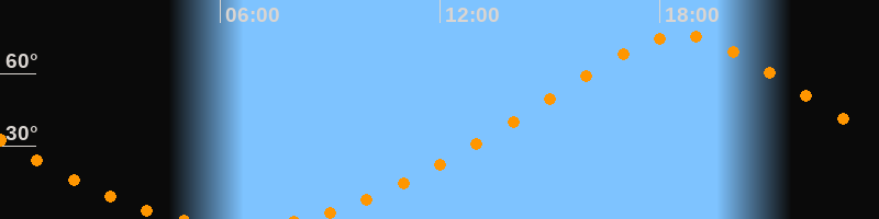 Höchster Stand (Kulmination)18:34 Uhr (h = 75,7°)