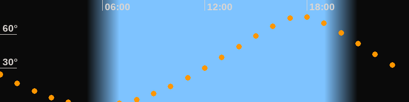 Höchster Stand (Kulmination)17:38 Uhr (h = 75,7°)