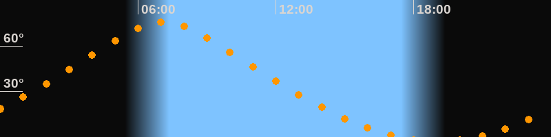 Höchster Stand (Kulmination)07:05 Uhr (h = 75,7°)