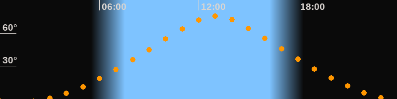 Höchster Stand (Kulmination)13:02 Uhr (h = 75,7°)