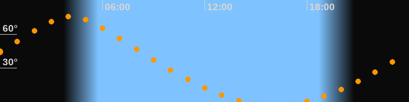 Höchster Stand (Kulmination)04:08 Uhr (h = 75,7°)