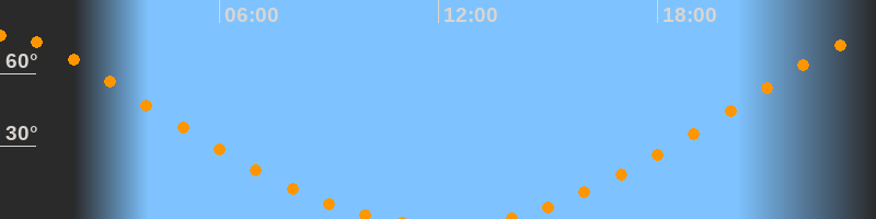 Höchster Stand (Kulmination)00:05 Uhr (h = 75,7°)