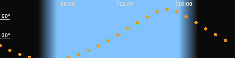Höchster Stand (Kulmination)17:00 Uhr (h = 75,7°)