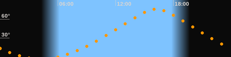 Höchster Stand (Kulmination)16:13 Uhr (h = 75,7°)