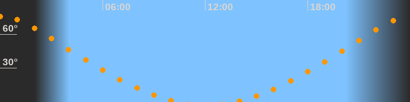 Höchster Stand (Kulmination)00:02 Uhr (h = 75,7°)