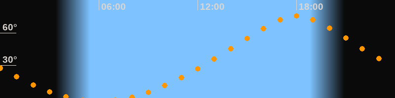 Höchster Stand (Kulmination)18:00 Uhr (h = 75,7°)