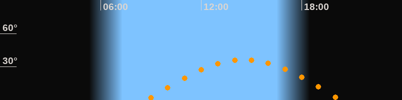 | Höchster Stand (Kulmination) | 14:32 Uhr (h = 36,5°) |