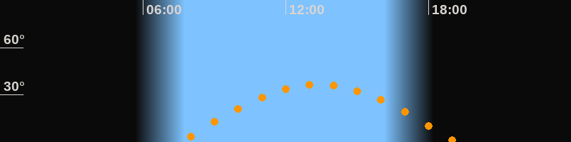 | Höchster Stand (Kulmination) | 13:22 Uhr (h = 36,5°) |