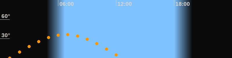 | Höchster Stand (Kulmination) | 06:45 Uhr (h = 36,5°) |