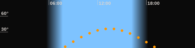 | Höchster Stand (Kulmination) | 13:27 Uhr (h = 36,5°) |