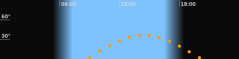 | Höchster Stand (Kulmination) | 14:27 Uhr (h = 36,5°) |