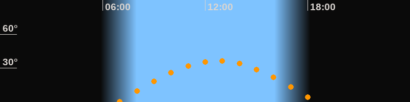 | Höchster Stand (Kulmination) | 12:42 Uhr (h = 36,5°) |