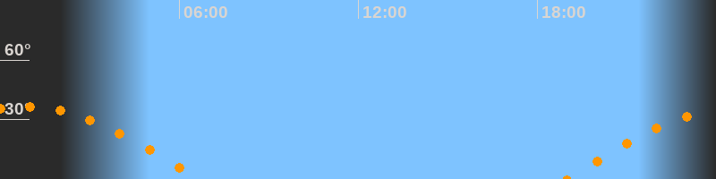 | Untergang | 06:41 Uhr im Westen (αAz = 266,3°) |