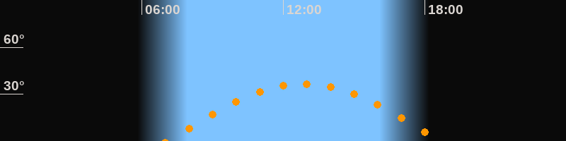 | Höchster Stand (Kulmination) | 12:52 Uhr (h = 36,5°) |