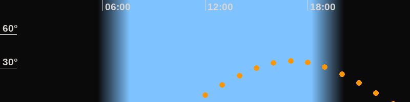 | Höchster Stand (Kulmination) | 17:06 Uhr (h = 36,5°) |