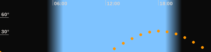 | Höchster Stand (Kulmination) | 18:06 Uhr (h = 36,5°) |