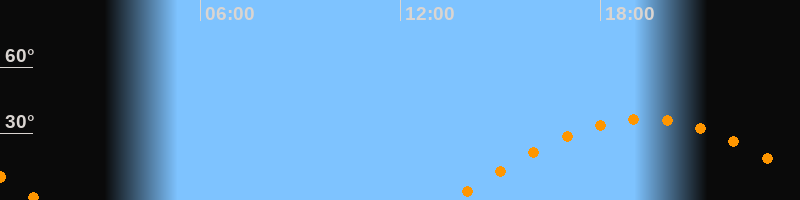 | Höchster Stand (Kulmination) | 19:20 Uhr (h = 36,5°) |