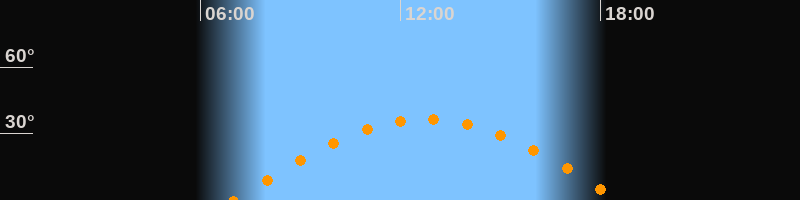 | Höchster Stand (Kulmination) | 12:47 Uhr (h = 36,5°) |