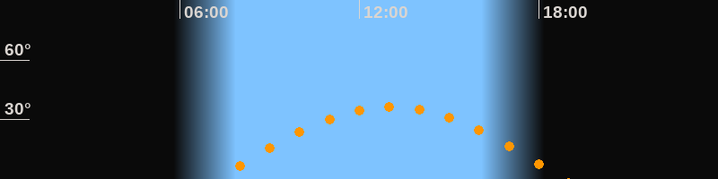 | Höchster Stand (Kulmination) | 13:03 Uhr (h = 36,5°) |