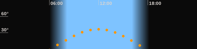 | Höchster Stand (Kulmination) | 11:57 Uhr (h = 36,5°) |