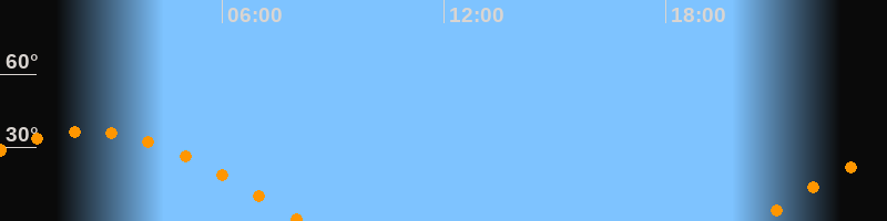 | Untergang | 08:09 Uhr im Westen (αAz = 266,3°) |