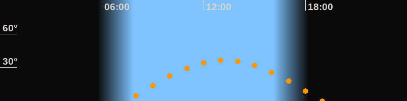 | Höchster Stand (Kulmination) | 13:13 Uhr (h = 36,5°) |