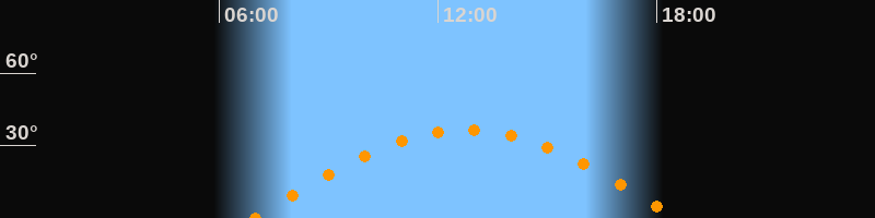 | Höchster Stand (Kulmination) | 12:46 Uhr (h = 36,5°) |