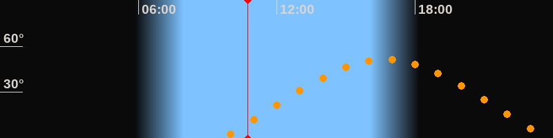 | Höchster Stand (Kulmination) | 16:41 Uhr (h = 51,4°) |