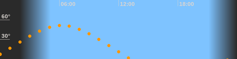 | Aufgang | 23:04 Uhr im Osten (αAz = 69,8°) |