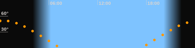| Aufgang | 17:18 Uhr im Osten (αAz = 69,8°) |