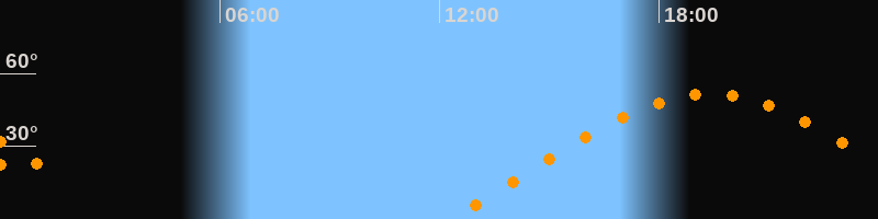 | Aufgang | 12:19 Uhr im Osten (αAz = 69,8°) |