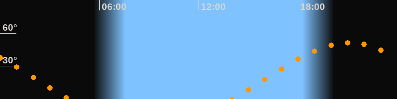 | Aufgang | 14:00 Uhr im Osten (αAz = 69,8°) |
