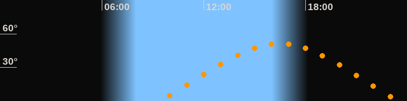 | Aufgang | 09:24 Uhr im Osten (αAz = 69,8°) |
