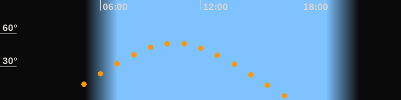 | Aufgang | 03:23 Uhr im Osten (αAz = 69,8°) |