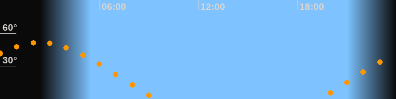 | Aufgang | 19:16 Uhr im Osten (αAz = 69,8°) |