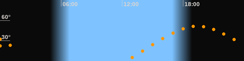 | Aufgang | 12:20 Uhr im Osten (αAz = 69,8°) |