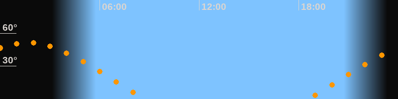 | Aufgang | 18:32 Uhr im Osten (αAz = 69,8°) |