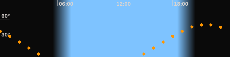 Aufgang14:23 Uhr im Osten (αAz = 69,8°)