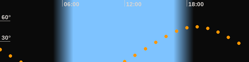 | Höchster Stand (Kulmination) | 18:54 Uhr (h = 51,4°) |